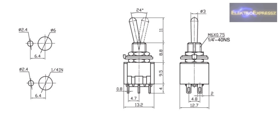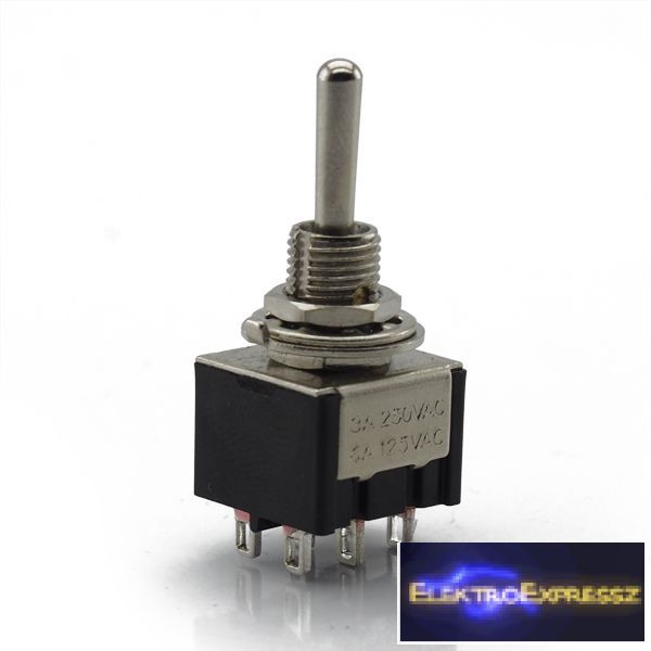2ák.6p.3áll.Mindkét állásából visszaálló karos kapcsoló.250V/3A.
