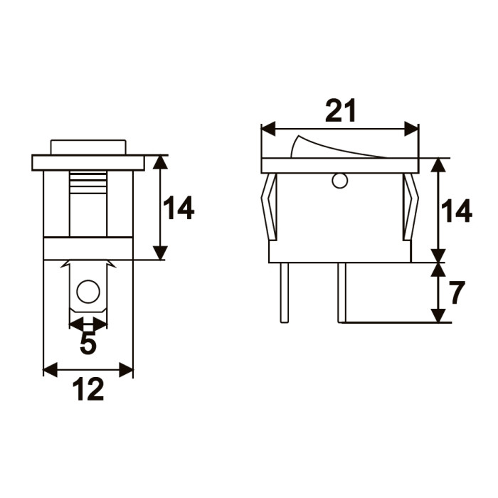 Kapcsoló típus: SPST Áramerősség: 6 A (10 A) - 250 V AC Beépítési méret: 19,5 x 13 mm Csatlakozók: 4,8 mm