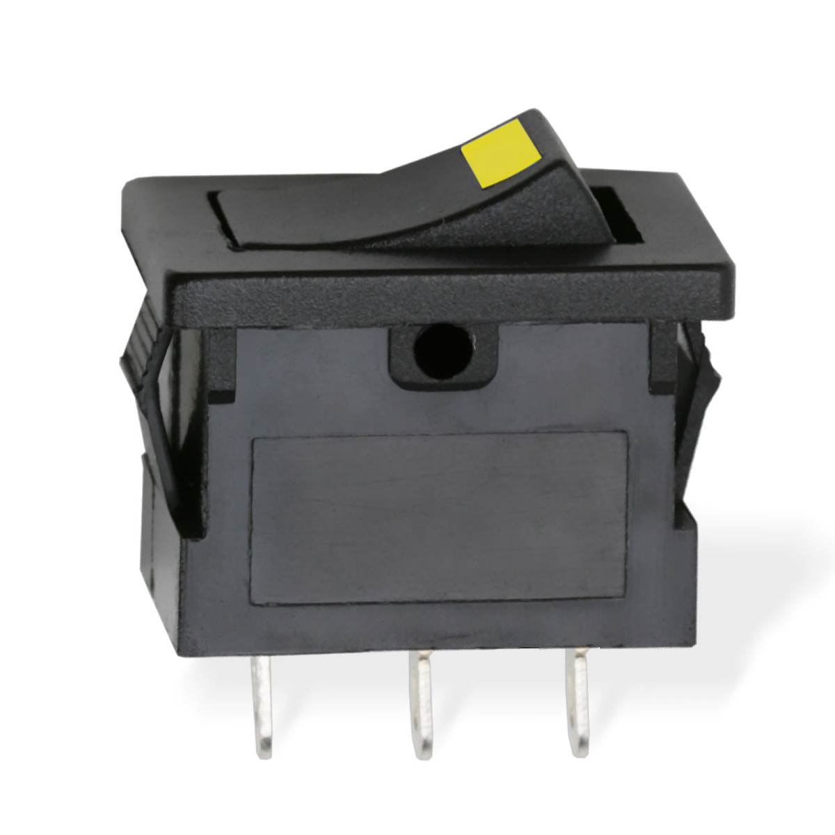 Beépíthető fekete billenőkapcsoló, amely sárga LED fénnyel jelzi a bekapcsolt állapot, így távolról is könnyedén ellenőrizhető a státusz. Széles körben alkalmazható, elektromos berendezések, járművek kezelőfelületén.