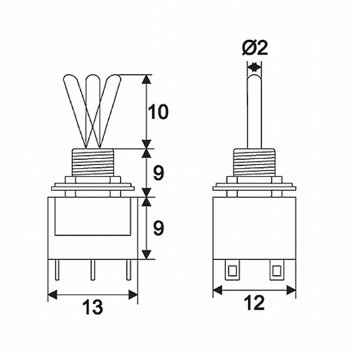 Kapcsoló típusa: DPDT Áramerősség: 3 A (6 A) - 250 V AC Kapcsolókar hossza: 10 mm Kapcsolótest mérete: 13 x 9 x 12 mm Csatlakozók: 6 db forrasztható