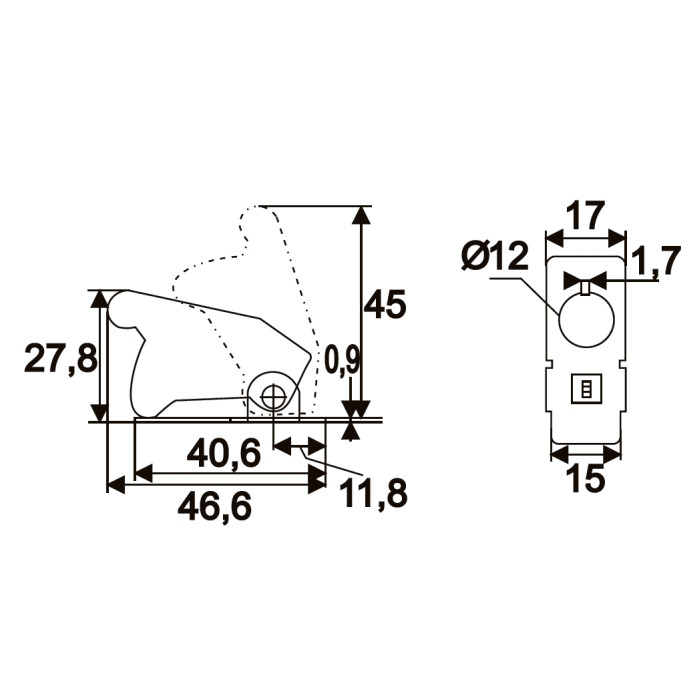 Aljzat mérete: 46,6 x 17 mm Sapka nyitott magasság: 45 mm Sapka zárt magasság: 27,8 mm Beépítési furat átmérő: 12 mm Szín: Átlátszó