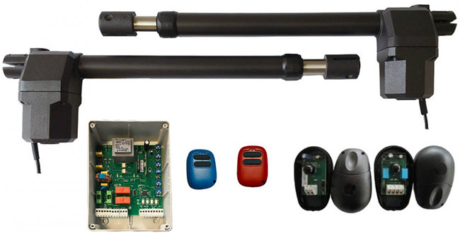 - Szárnyas kapu mozgató szett, kétszárnyú kapuhoz.