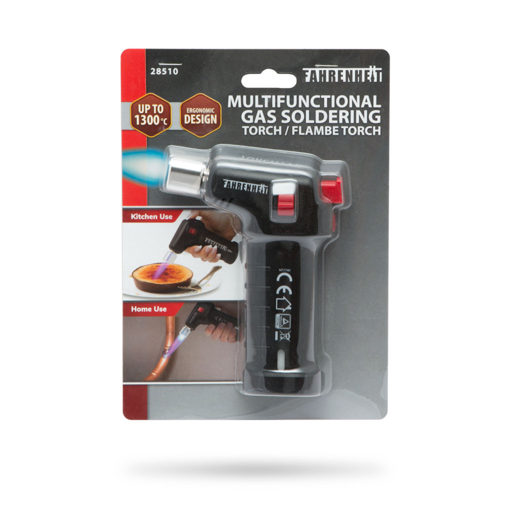 A Fahrenheit innovatív, multifunkciós gázüzemű forrasztó / flambírozó készüléke sokoldalúan használható a barkácsolás – zsugorítás (zsugorcső), hevítés, valamint a gasztronómia – flambírozás, karamellizálás - területén is. A széleskörű felhasználás tette az egyik legkedveltebb modellé ezt a kisméretű, kompakt készüléket, mely újra tölthető gáztartályának köszönhetően hosszú időn át szolgálja a mindennapi munkavégzésben. A konyhasárkányként, zsebsárkányként is ismert készülék biztonsági kapcsolóval, piezo gyújtórendszerrel, valamint lángszabályzóval van ellátva, illetve folyamatos láng kibocsájtásra is képes. A gáz mennyisége a gáztartály ablakban ellenőrizhető.