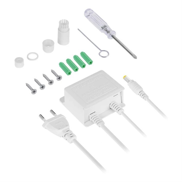 Kamera tápellátása: DC 2.1/5.5 csatlakozó (5V/2A). Tápegység mellékelve (230 V).