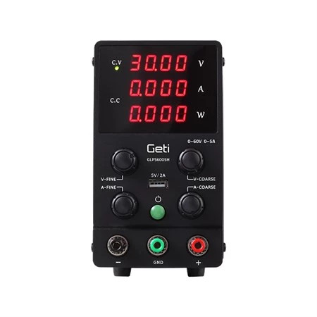 Leírás Ez a termék 3 év garanciával rendelkezik. A Geti GLPS 6005H laboratóriumi tápegység különféle elektronikus eszközök táplálására szolgál. Folyamatosan szabályozza a kimeneti feszültséget és a kimeneti áramot. Megbízhatóan fenntartja a beállított értékeket a tápfeszültség vagy a csatlakoztatott terhelés ingadozásától függetlenül. A kimeneti feszültség 0V és 60V között, a kimeneti áram pedig 0A és 5A között állítható. A forrás stabilitása és hullámossági tényezője nagyon jó. A készülék állandó feszültségforrásként vagy állandó áramforrásként is üzemeltethető. A készülék rövidzárlatvédelemmel van ellátva, így váratlan esemény esetén biztonságos a felhasználó számára, és egyúttal nem megy tönkre. A tápegység alkalmas laboratóriumokban, műhelyekben, elektronikai gyártósorokon, háztartási gépeket javító vállalatoknál, barkácsoláshoz, de iskolai oktatási segédeszközként is használható.
