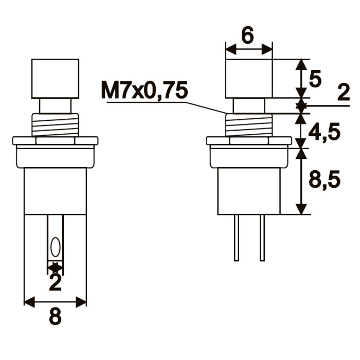 Áramerősség: 1,5 A (3 A) - 250 V AC Beépítési mélység: 18 mm Beépítési átmérő: 8 mm Beépített anya: M7 x 0,75 Csatlakozó méret: 2 mm, forrasztható Szín: Fekete