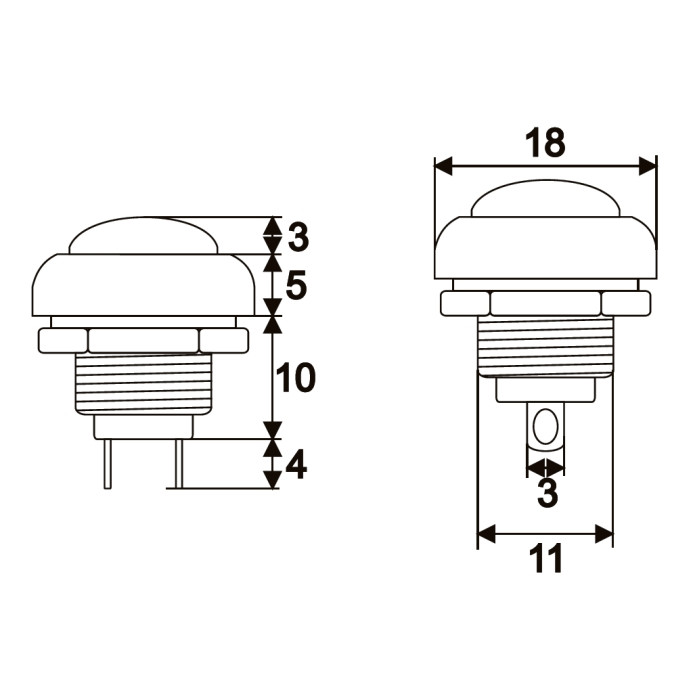 Kapcsoló típusa: SPST Áramerősség: 1 A - 250 V Beépítési méret: 11 mm Csatlakozó mérete: 3 x 4 mm Nyomógomb színe: Fekete / Narancs