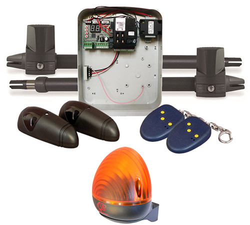 - Szárnyas kapumozgató szett, kétszárnyú kapuhoz.