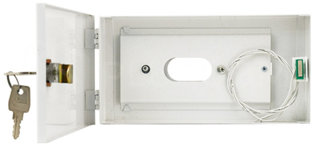 Fémdoboz SATEL kezelőkhöz, zárható, fehér, 210x110x40mm, beltéri kivitel.