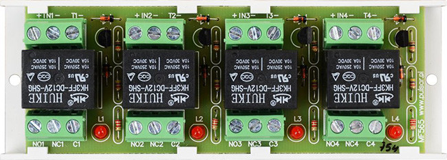 Relépanel, 4 db NO/NC relé, 10-14 VDC, 2 A.
