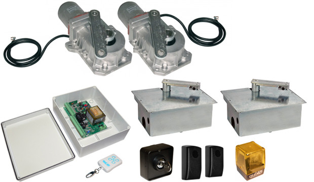 Kétszárnyú szett, 300cm/400kg,2db földberejtett motor,vezérlés,infrasorompó,villogó,adó.