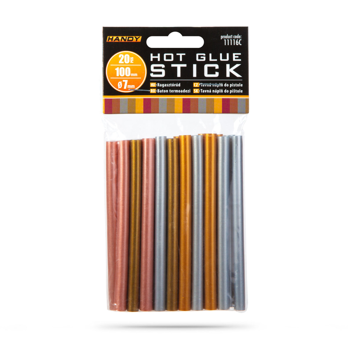 7 mm befogadómérettel rendelkező ragasztópisztolyokhoz való ragasztórúd. A rúd hő hatására megolvad, amely a pisztoly segítségével egyenletesen adagolható. Ideális lehet műanyagokhoz, papír-írószerekhez, hobbi dekor elemekhez vagy akár ajándékok becsomagolásakor.