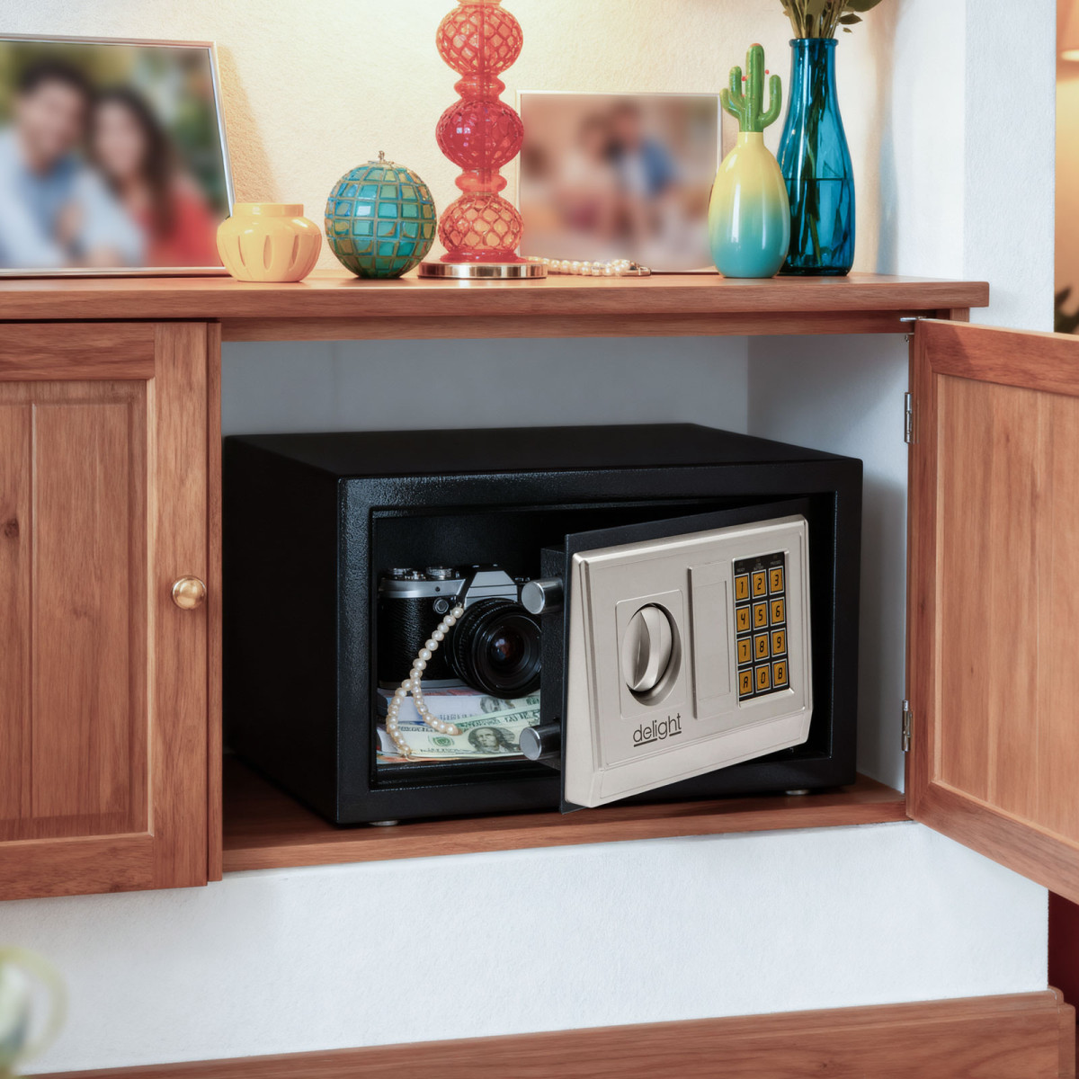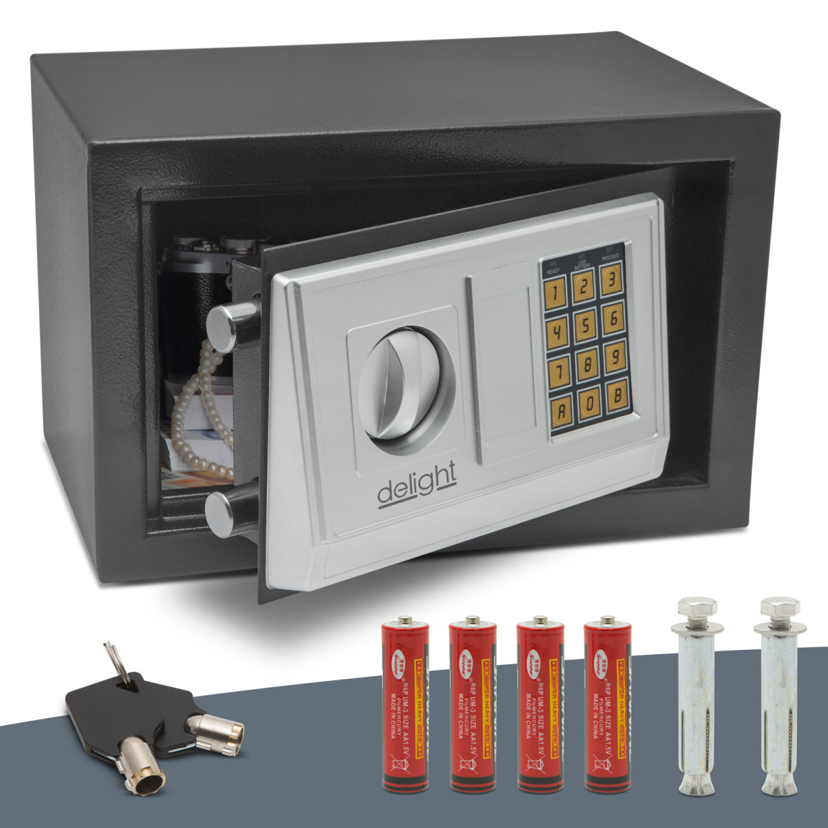 Tárolja értéktárgyait, ékszereit, útlevelét biztonságos helyen egy kompakt, erős széfben. Az elhelyezett pótolhatatlan tárgyak biztonságáról digitális védelem gondoskodik, melynek PIN-kódját csak Ön tudhatja, így kizárhatóak az illetéktelen személyek. A biztonsági kód 3-8 számjegyből álló számsor lehet, teljesen egyedi számkombinációban. A PIN-kód elfelejtése esetén a széf csak a mesterkulccsal nyitható ki.