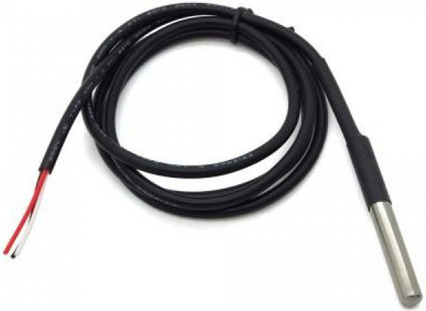 A DS18B20 vízálló, zárt hőmérsékletérzékelő vezetékkel. Hasznos eszköz magas páratartalmú helyiség vagy akár folyadék hőmérsékletének mérésére. Habár az érzékelő maximális mért hőmérséklete legfeljebb 125°C, de a vezeték PVC borítása miatt, azt javasoljuk, hogy a felhasználás legfeljebb 100°C fokos környezetig történjen. Az érzékelő által mért adat akkor is pontos marad, ha felhasználó az SP231 riasztó paneltől nagy távolságra van felszerelve.