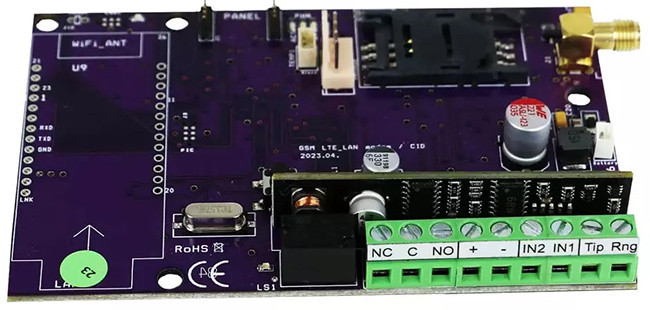Analóg telefonvonal szimulátor, 4G, 2 bemenet, 1 kimenet, SMS, hangüzenet, Contact ID.