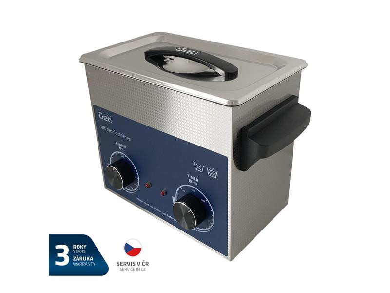 Geti GUC 03A Ultrahangos tisztító with heater cleans all surface impurities only with the help of water and vibrations generated by ultrasound. Ultrasonic cleaning is based on a cavitation effect caused by high-frequency vibration signals of ultrasonic waves in the fluid. Microscopic bubbles are formed and rapidly imploded, which causes intensive cleaning on the surface of the object. The bubbles are small enough to penetrate the microscopic slits and thus thoroughly clean the object. This Geti ultraosnic cleaner is used for cleaning a wide range of tools and mechanical components.