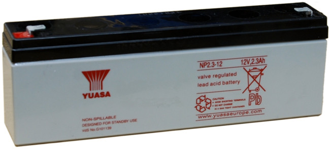 12V, 2.3Ah, zselés, ólom akkumulátor, gondozásmentes, 178x34x64mm, 0.95kg.